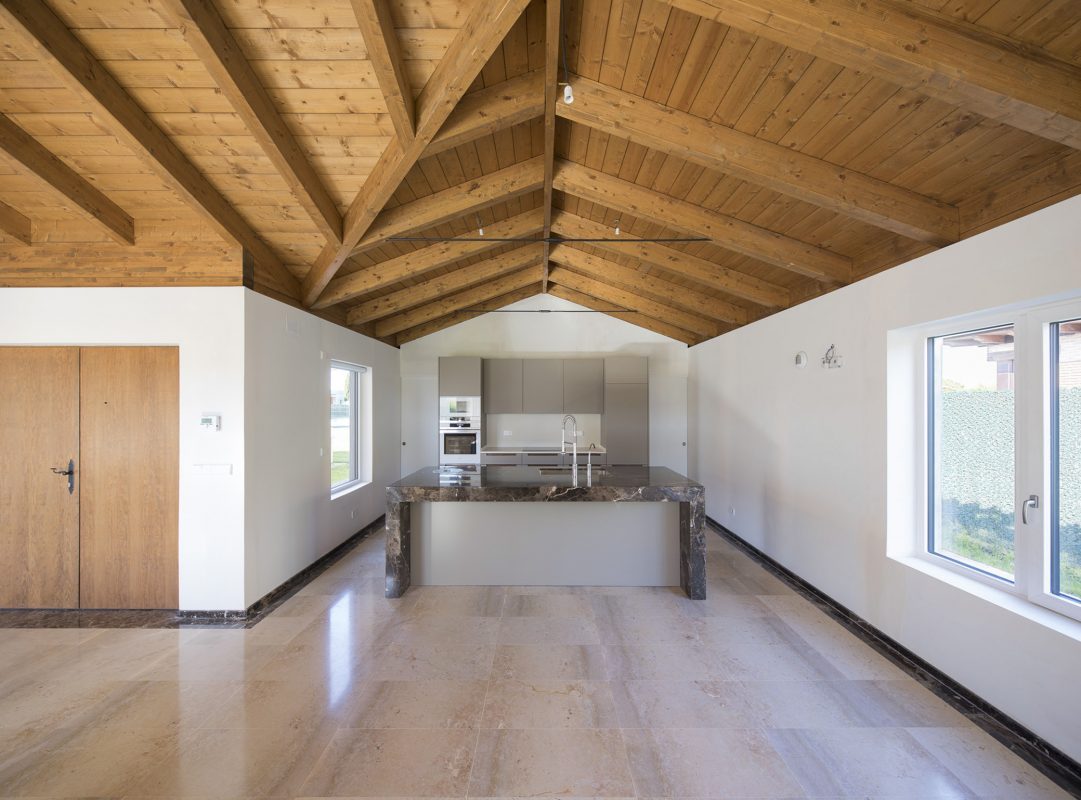 CASA CC Laguna de Duero Laguna de duero ARQUIETECTURA QUIRÓS PRESA -Pablo López Presa + Itziar Quirós Director/a de ejecución Henar Arranz Blanco Estructuras Alfredo Lafuente Laguna Superficie 275m2 Constructor MEDGON SL Estado Construido 2018 PASSIVHAUS ID:5960 Fotografía © Del Rio Bani La Casa CC es un refugio concebido para ofrecer paz y tranquilidad, una vivienda confortable construida con materiales naturales y diseñada bajo criterios de máxima eficiencia energética. Situada en el entorno anodino de una urbanización sin vistas, la estrategia fue proyectar una casa volcada en sí misma y articulada en torno a dos patios: al norte, un patio cerrado que resuelve accesos y servicios; al sur, un patio acristalado que se diluye en el jardín y convierte el exterior en una prolongación del interior. La vivienda se organiza en una sola planta con forma de H. El ala oeste acoge las estancias privadas —dormitorios, baños y un taller de pintura— mientras que el ala este reúne los espacios públicos de salón, comedor y cocina. El atrio central formaliza el acceso, conecta ambos patios y actúa como espacio de transición. Todo queda unificado bajo un gran tejado de madera, que se aproxima al norte para dejar entrar la luz y se prolonga al sur para generar sombra. Finalizada en noviembre de 2018, la vivienda fue certificada como Low Energy Building por el Passivhaus Institut y resultó finalista del XI Premio de Arquitectura y Urbanismo de Castilla y León.
