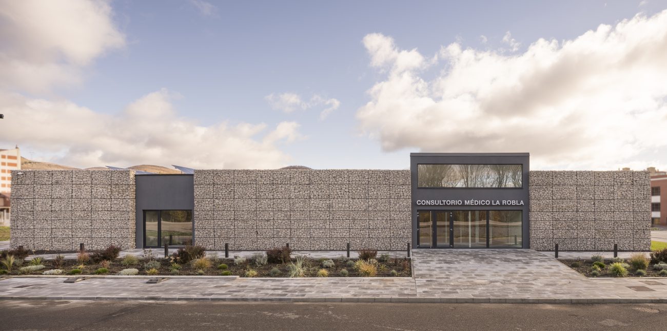 Consultorio médico de La Robla LA ROBLA Arquitectura QUIRÓS PRESA Director/a de ejecución Iván del Cueto Reyero Estructuras Laura Gonzalo Instalaciones Rafael Juan y Tomás Martínez Colaboradores Javier Ibán, Raquel Catalán Superficie 1000m2 Promotor Ayuntamiento de La Robla (León) Constructor VDL SL Estado Construido 2023 PASSIVHAUS ID:7255 Fotografía © Imagen Subliminal El consultorio médico de La Robla se desarrolla íntegramente en planta baja, con 1.000 m² útiles organizados en torno a un patio central. La planta cuadrada reparte sus cuatro lados en áreas funcionales diferenciadas: administración al este, consultas ordinarias al sur, urgencias al oeste y almacenes al norte. En el centro, el patio ajardinado se convierte en el corazón del edificio, aportando luz, ventilación y vistas, y funcionando como prolongación natural de las salas de espera. El proyecto apuesta por materiales naturales y de proximidad, minimizando la huella de carbono. Su fachada está formada por gaviones rellenos con los cascotes de hormigón procedentes de la demolición de la antigua chimenea de la central térmica, un gesto que combina sostenibilidad y memoria. Este material reciclado y de kilómetro cero, además de dotar al edificio de gran inercia térmica, simboliza la transición energética de La Robla y ancla el proyecto a la identidad del lugar. Con criterios pasivos y bioclimáticos, el consultorio prescinde por completo de combustibles fósiles y produce gran parte de su energía mediante una instalación fotovoltaica en cubierta. Inaugurado en 2023, se convirtió en el segundo edificio sanitario de España en obtener el sello Passivhaus, consolidándose como un referente de eficiencia energética y arquitectura sostenible en Castilla y León.