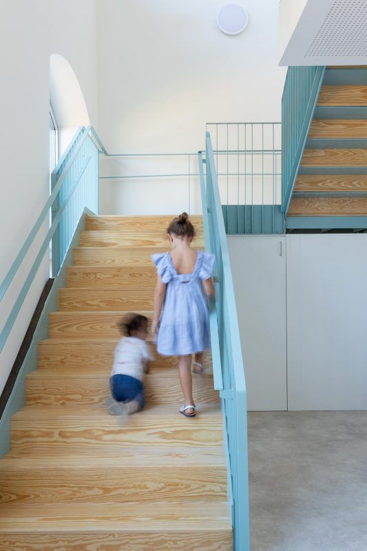 ESCUELA INFANTIL LEÓN ARQUITECTURA QUIRÓS PRESAPablo López Presa + Itziar Quirós Director de EJECUCIÓN Iván del Cueto Reyero Colaboradores Raquel Catalán Javier Iban Pablo Villoria Constructor ROMÁNICA SL Promotor Ayuntamiento de León Presupuesto 317.000€ Estado Construido 2025 Fotografía María Merchante La rehabilitación de la Escuela Infantil Dama de Arintero en León, aborda la reforma interior de uno de los edificios de mayor calidad arquitectónica de la ciudad. La intervención es precisa y respetuosa con la arquitectura existente, y se centra en mejorar la accesibilidad, el uso y la experiencia espacial del conjunto. El edificio es fruto del concurso arquitectónico ganado en 1998 por los arquitectos madrileños Javier Fresneda y Javier Sanjuán, que transformaron un antiguo complejo industrial en un equipamiento público contemporáneo. Nuestra intervención, desarrollada en 2025, incorpora la accesibilidad universal a la planta superior del pabellón mediante una gran rampa exterior, redefine las comunicaciones interiores con la creación de un atrio a doble altura y se completa con la renovación integral de instalaciones, acabados y envolvente térmica. La reforma potencia las dobles alturas existentes, reorganiza las circulaciones y simplifica los recorridos. La mejora de la luz natural, junto con una cuidada selección de materiales, genera espacios más luminosos, claros y adecuados al uso infantil. La actuación se extiende también a los espacios exteriores, reforzando la relación entre interior y entorno y dando lugar a una escuela más accesible, funcional y luminosa.